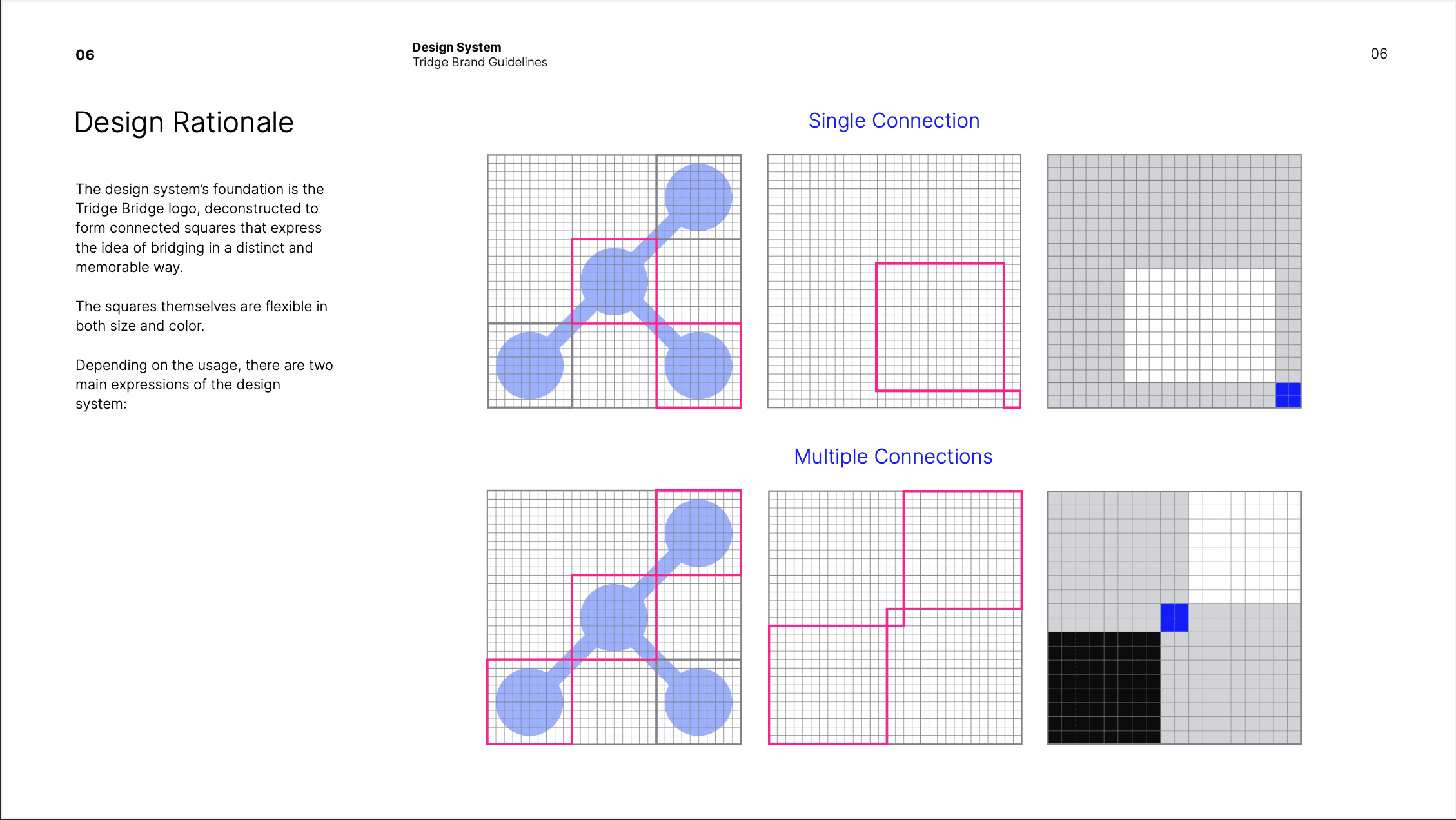 Inspired by the logo itself, we created a modular design system that expresses the idea of connection through a line that bridges elements together.