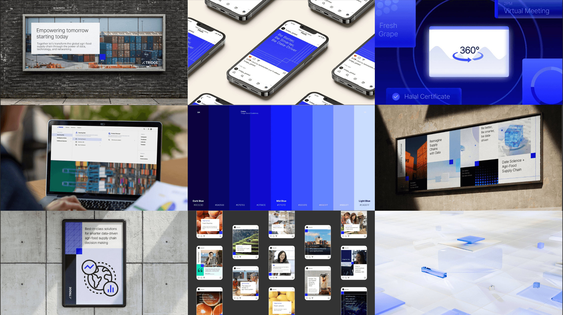Tridge is a South Korean agri-data unicorn with a mission to empower the global agri-food supply chain through data. The task was to elevate the company’s overall branding through a sophisticated and elegant visual system that could be applied to all external and internal touchpoints.